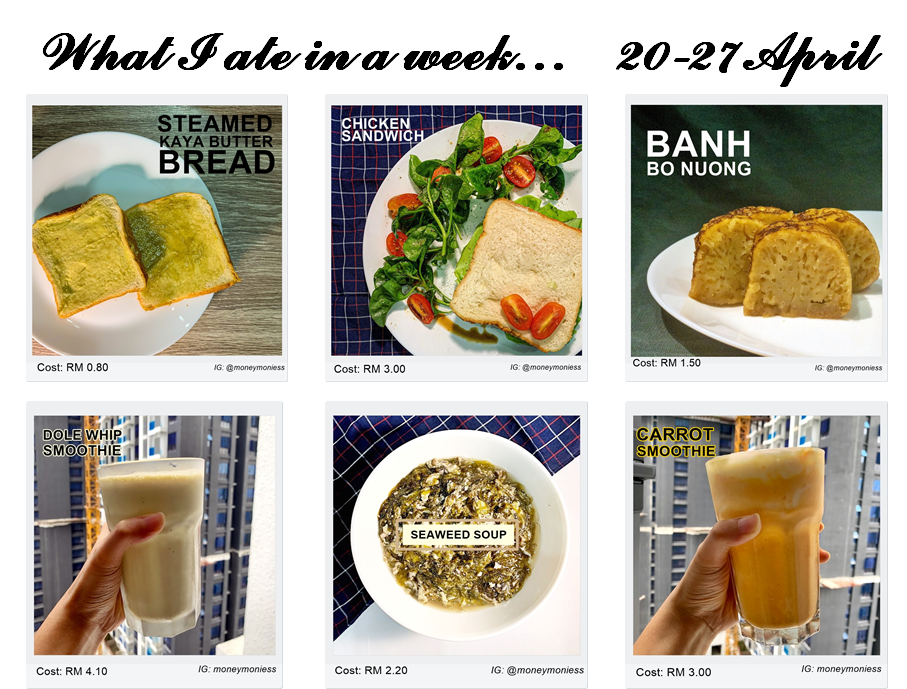 After reading Ringgit Oh Ringgitâs post on Personal Finance Blog Ideas, I have decided to update on my food spending for the week! (It is also fortunate that I kept the receipts this time around.) Here goes, my meals for the week and how much they cost, and some pictures.